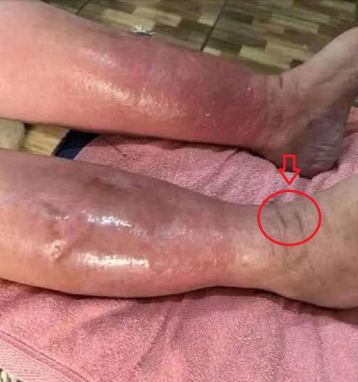 - Red, raw skin